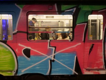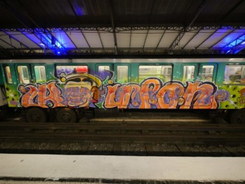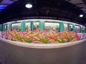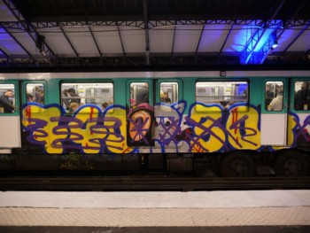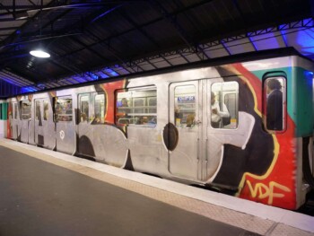 Cette accumulation de retard dans le nettoyage crée des cadavres-exquis roulants. Les métros sont graffés par des équipes françaises mais aussi internationales, on vient de loin, Italie, Europe de l’Est, Irlande pour peindre la prestigieuse ligne de métro parisienne. Le métro transporte l’art urbain dans l’espace public, le vandalisme rentre ainsi de force dans le champ de l’art publique.