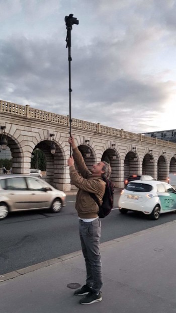 La caméra remplace le fusil à lunette, l’oeil est décuplé par le zoom stabilisé de l’appareil. L’environnement est aussi à l’honneur, on ne peut déconnecter ces spots magiques de prises de vue de leur quartier respectif, la BNF du 13ème arrondissement et le viaduc de Passy aux portes du 16ème arrondissement. Pour tuer le temps, je vanne tout ce qui passe dans ma ligne de mire, les sportifs, les artistes, les gens en croisière sur la seine, les jeunes alcoolisés, les amoureux, tout y passe. La caméra crée le contact et des rencontres improvisés autant avec des rappeurs débutants qu’avec des élèves en cours de bizutage ou des photographes étrangers.