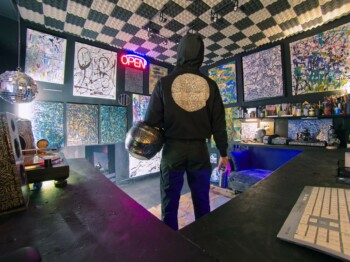 Une boîte noire pour arrêter le temps. Et, avec lui, l’hyper-création qui a amené Jérôme Thomas, enfant du graf, du rap et de la vidéo à produire objets, toiles, dans une frénésie qui aujourd’hui se donne à voir et à ressentir. Son atelier à Ivry a été confisqué par l’exposition immersive d’un vaisseau spatial qui aurait suspendu son vol.